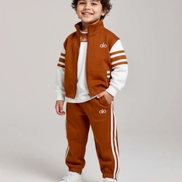 Boys Orange Zipper Jacket & T-shirt With Jogger Set