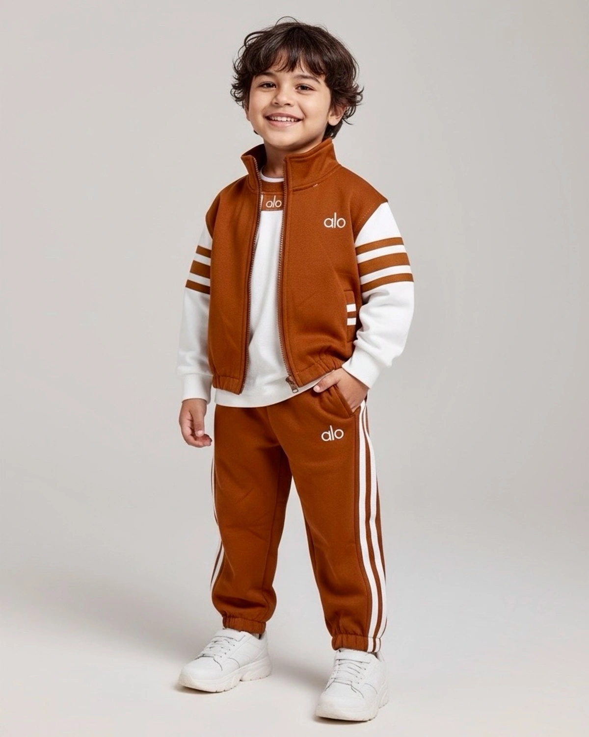 Boys Orange Zipper Jacket & T-shirt With Jogger Set